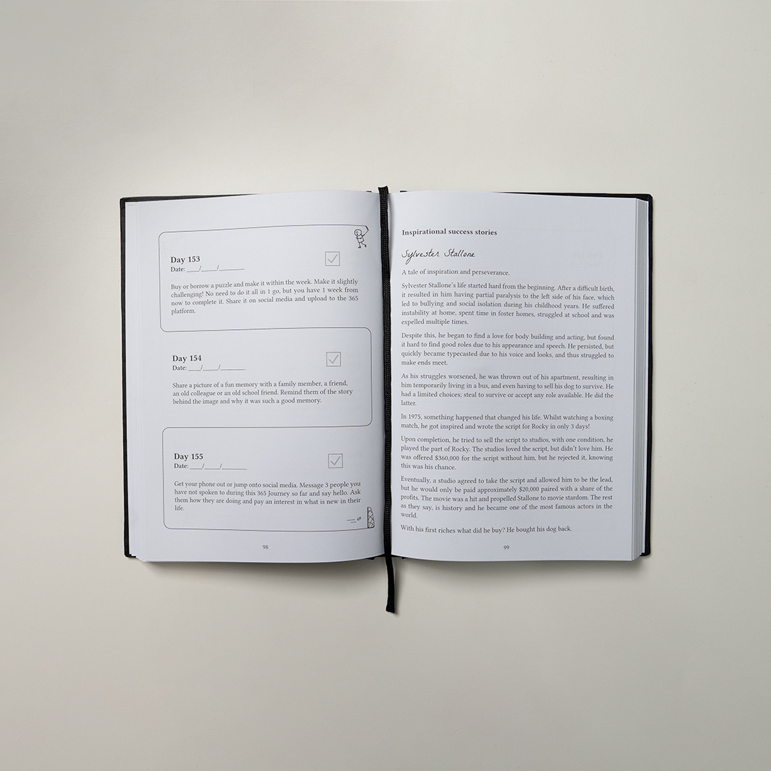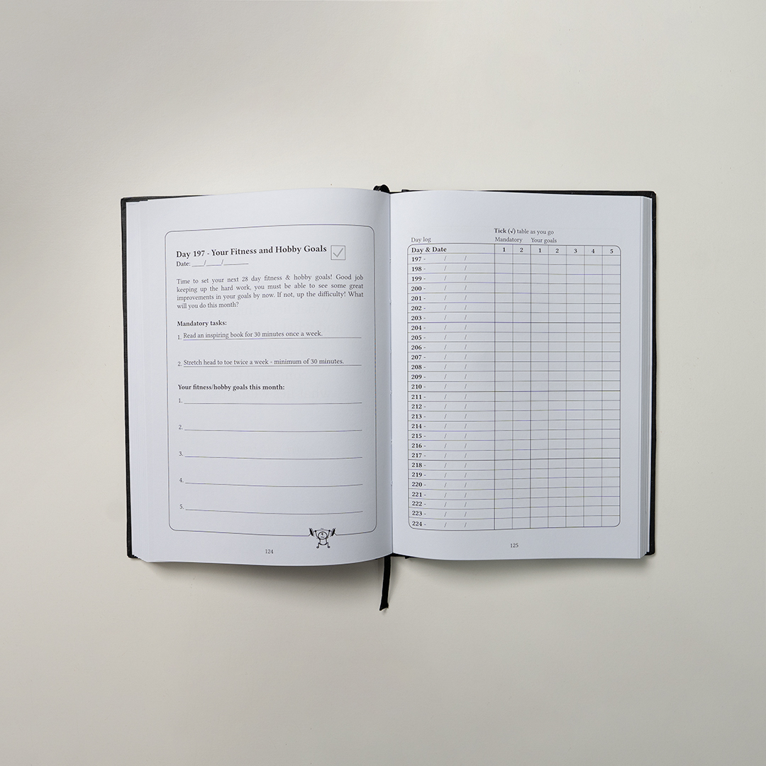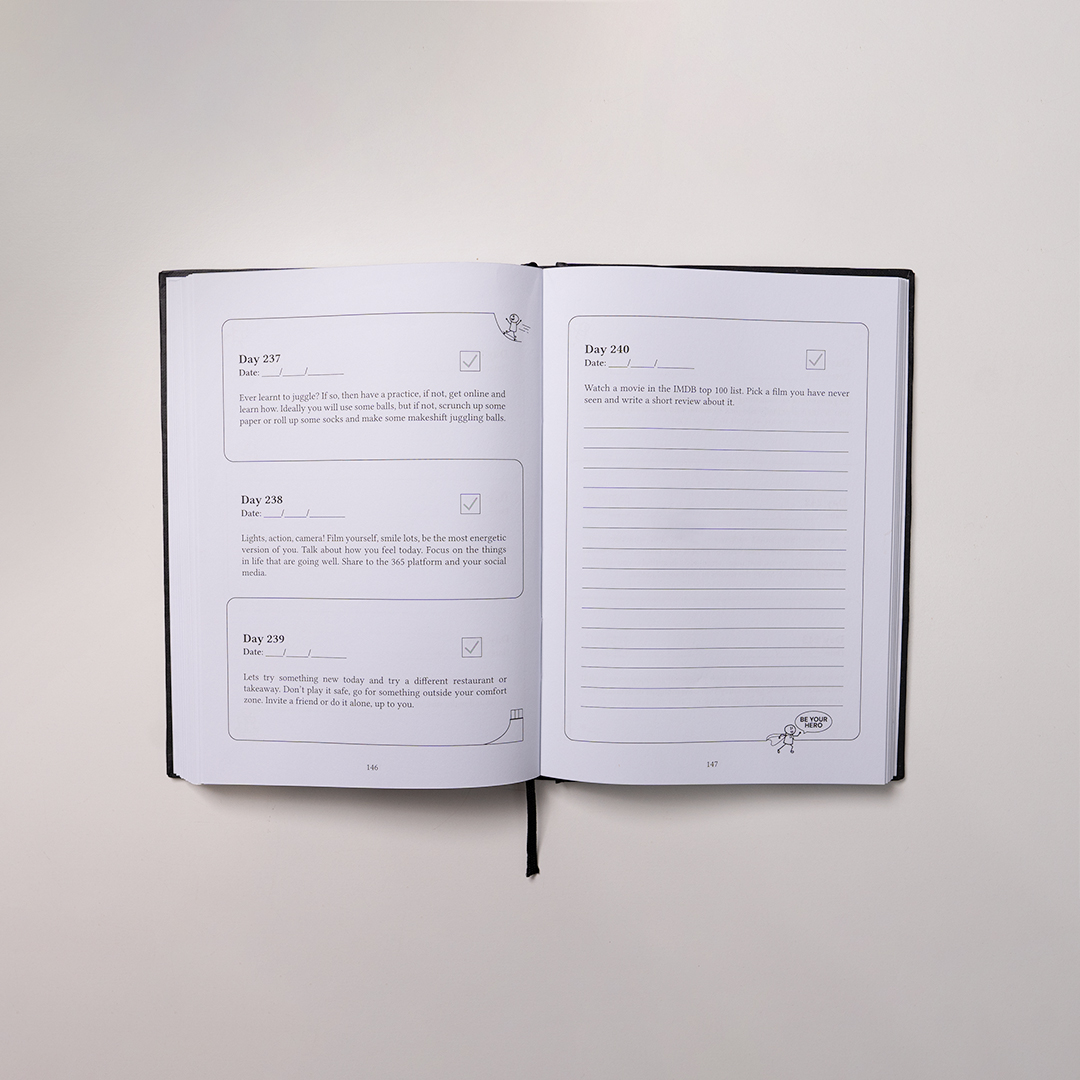 What makes My 365 Journey so unique compared to other journals is it’s daily tasks designed to ensure you have a goal each day to enhance your life in 4 key matrixes, socialising, self-care, experiences and personal savings. Accompanying this are 28 day fitness and hobby goals, paired with areas for reflection and goal setting.