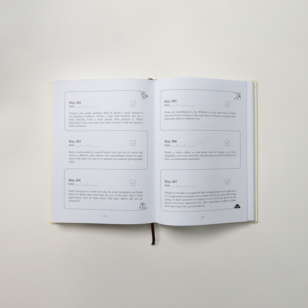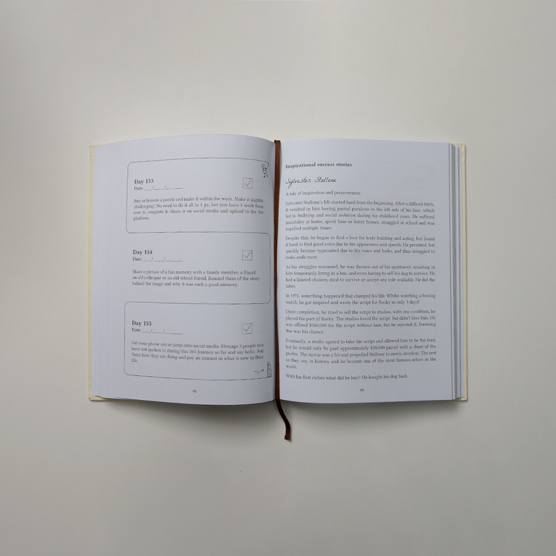 What makes My 365 Journey so unique compared to other journals is it’s daily tasks designed to ensure you have a goal each day to enhance your life in 4 key matrixes, socialising, self-care, experiences and personal savings. Accompanying this are 28 day fitness and hobby goals, paired with areas for reflection and goal setting.